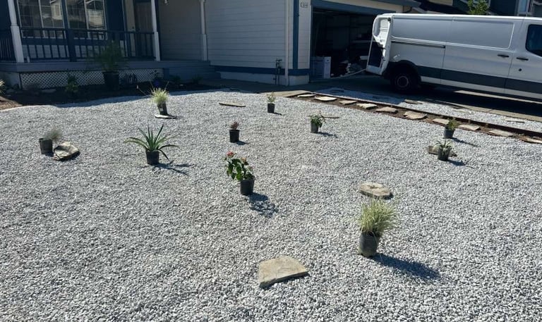 Decorative rock landscaping adds texture and charm, creating low-maintenance beauty for any property.